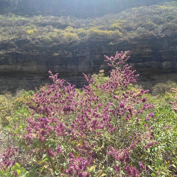 El tomillo canario es nativo de la Macaronesia, estando presente en Canarias, Madeira y Cabo Verde, aunque existe una subespecie endémica en la mitad norte de Gran Canaria, presente justo en esta parte del barranco.